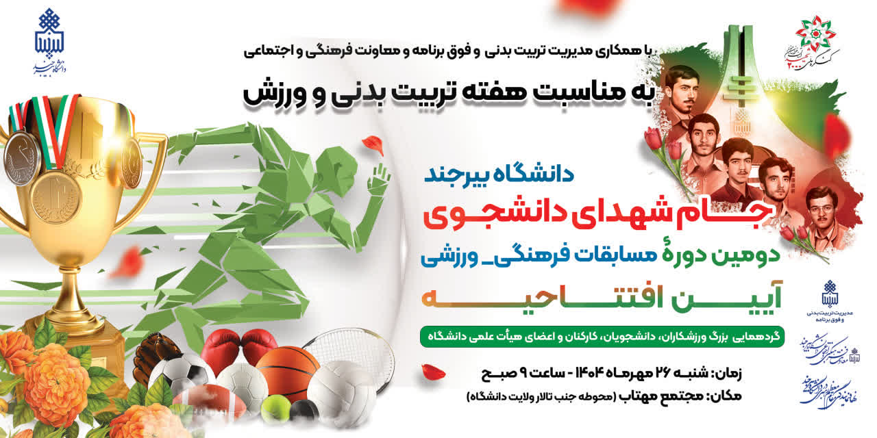 دومین دوره مسابقات فرهنگی - ورزشی و آیین افتتاحیه جام شهدای دانشجو ۲۳ مهر ۱۴۰۴ | ۱۵:۲۹ کد : ۳۲۱۳۴ اطلاعیه ها اطلاعیه های مهم ارسال به دیگران نام شما ایمیل شما ایمیل دریافتکننده ارسال انصراف تعداد بازدید:۵۰۳
